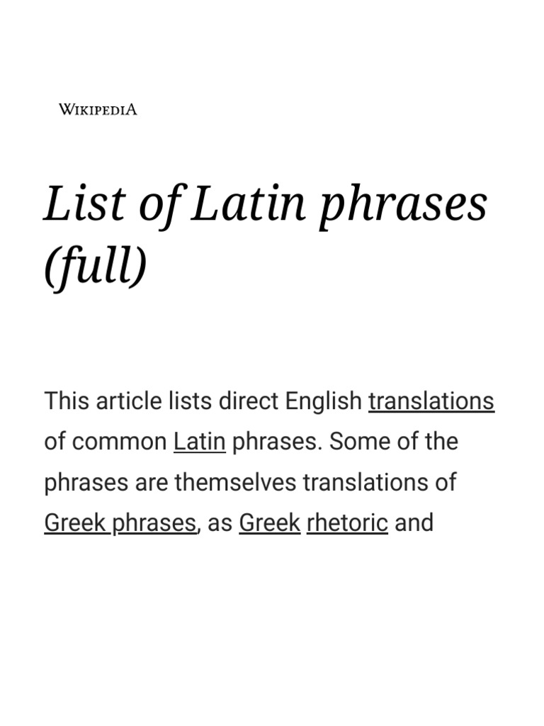 The Basic Latin Phrases and the Common Latin Sayings will help you learn Latin vocabulary. While Latin hasnt been regularly spoken or written for hundreds of years save for the occasional scholarly text its legacy is still felt throughout the lexicon of both Romance and Germanic languages todayWhether youre launching an ad hominem attack or adding etcetera to the end of a list its likely youre peppering your speech with Latin phrases without even.