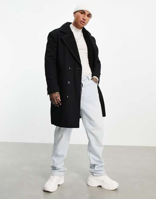 Mens Black Wool Pea Coat. DOUBLE-BREASTED WOOL BLEND COAT. Bjorn Borg Blood Brother.